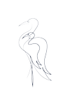 Line drawing of a heron with wings spread, perched on a rectangular base, with a black and white background.
